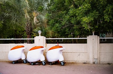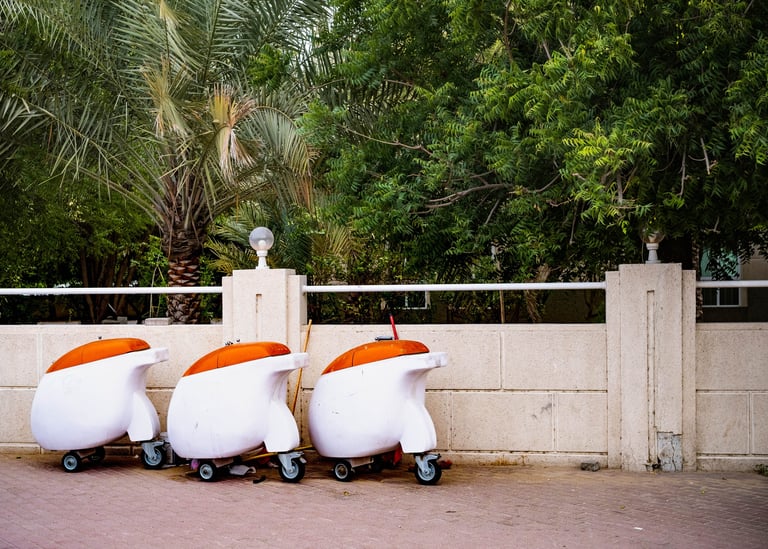 On a morning walk was attracted to the orange color and on closer investigation found that these were car cleaning pods used by the cleaning company that served the nearby public car park. It made an interesting view with all three lined up together next to the wall...