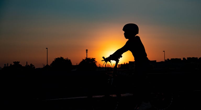 Was out cycling with my son and the sun was setting in a bright yellow and orange colour and the same was painting the sky similarly. The intention was to capture the sky as well as the activity so decided to take a silhouette of my son with the beautiful colorful sky as backdrop. Enjoy...